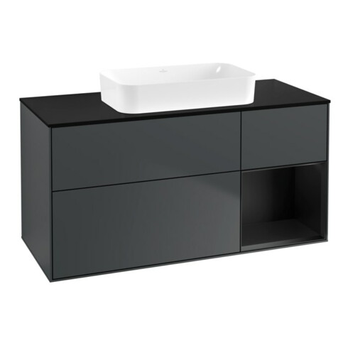 TTCV&B Meuble sous lavabo Finion 120x60 cm, Rg droite blanc mat laqué, md bleu mat laqué
