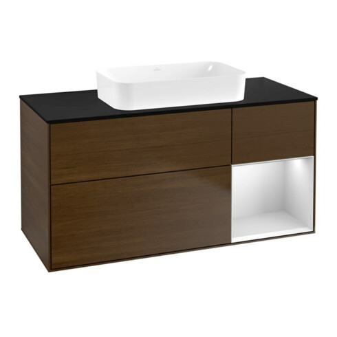 TTCV&B Meuble sous lavabo Finion 120x60 cm, tiroir droite blanc mat, placage noyer