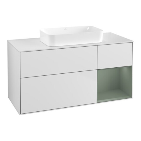 TTCV&B Meuble sous-lavabo Finion 120x60 cm, tiroir droite, chêne huilé laqué, blanc laqué