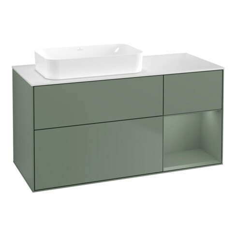 TTCV&B Meuble sous-lavabo Finion 120x60 cm, tiroir droite, olivier mat laqué