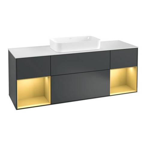 TTCV&B Meuble sous lavabo Finion 160 cm, blanc mat, gris brillant, mat bleu brillant