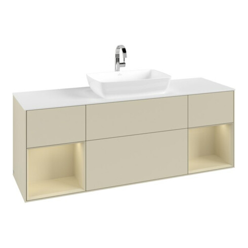 TTCV&B Meuble sous lavabo Finion 160 cm, blanc mat, poignée argent mat, laqué gris