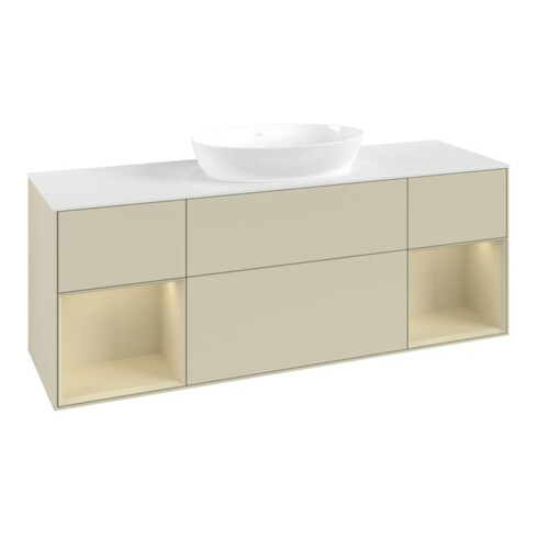 TTCV&B Meuble sous lavabo Finion 160 cm, blanc mat, rangement simple, gris mat laqué