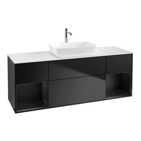 V&B Meuble sous lavabo Finion 160 cm, blanc mat, tiroir bleu mat laqué