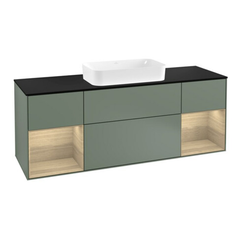 TTCV&B Meuble sous lavabo Finion 160 cm, bleu clair, éclairage mural, étagère ouverte, huile et laque