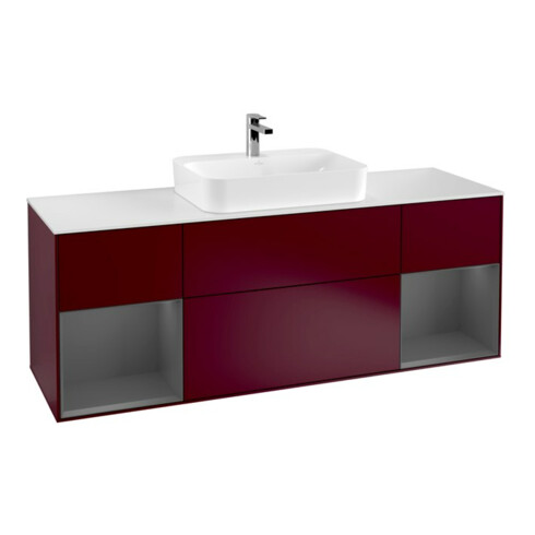 TTCV&B Meuble sous lavabo Finion 160 cm, éclairage mural, anthracite mat, laqué, poignée métal