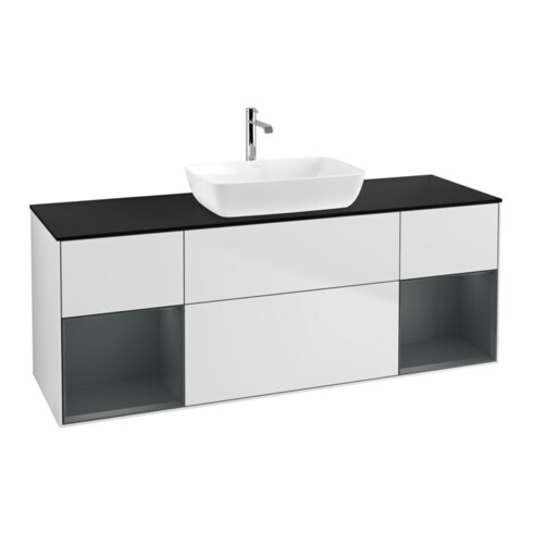 TTCV&B Meuble sous lavabo Finion 160 cm, Pl bleu mat, tiroir médium mat laqué, blanc mat laqué