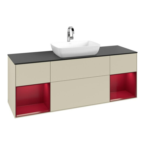 TTCV&B Meuble sous lavabo Finion 160 cm, placage bois, face Peo mate laquée, côtés gris mate laqués