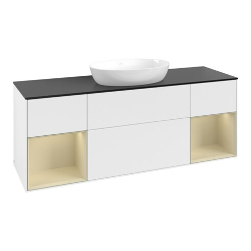 TTCV&B Meuble sous lavabo Finion 160 cm, placage bois, gris soie mat laqué, blanc mat laqué
