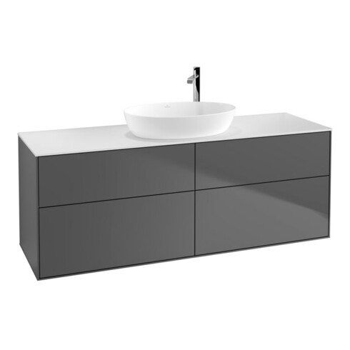 TTCV&B Meuble sous-lavabo Finion 160x60 cm, plan de toilette blanc, anthracite mat