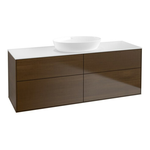 TTCV&B Meuble sous lavabo Finion 160x60 cm, plan lavabo blanc, placage noyer