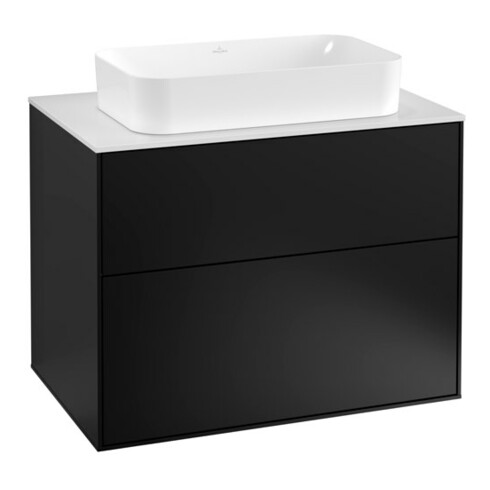 TTCV&B Meuble sous lavabo Finion 80x60,3 cm, plan de toilette blanc, façade bleue laquée