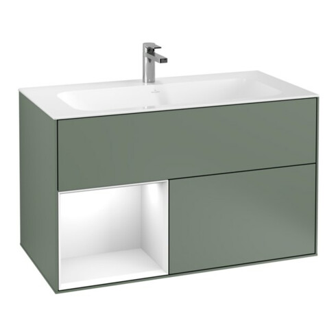 TTCV&B Meuble sous lavabo Finion Reg Gche laqué blanc brillant, Olive mat lacquer