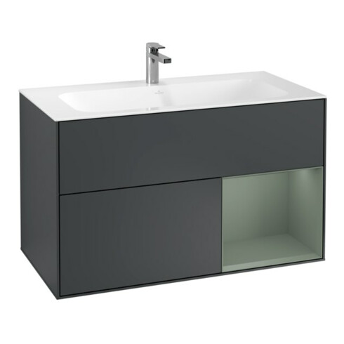 TTCV&B Meuble sous lavabo Finion Reg re Oli. m Laque, avec laque bleue mate