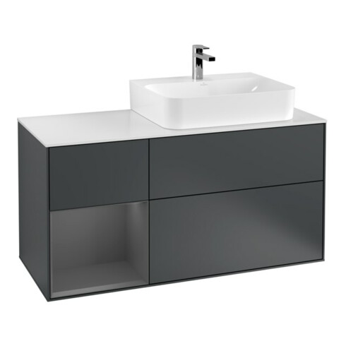 TTCV&B Meuble sous lavabo Plage Gl. blanc avec Finion 120 cm, étagère gauche Anthracite, avec tiroir bleu, avec laque