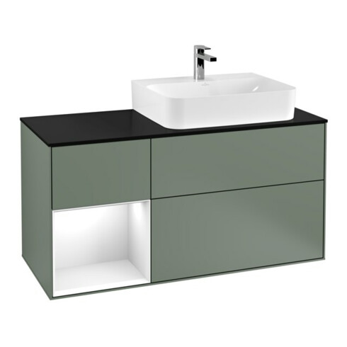TTCV&B Meuble sous lavabo Plan de toilette bleu clair Finion 120 cm, étagère gauche blanc brillant, laque huileux