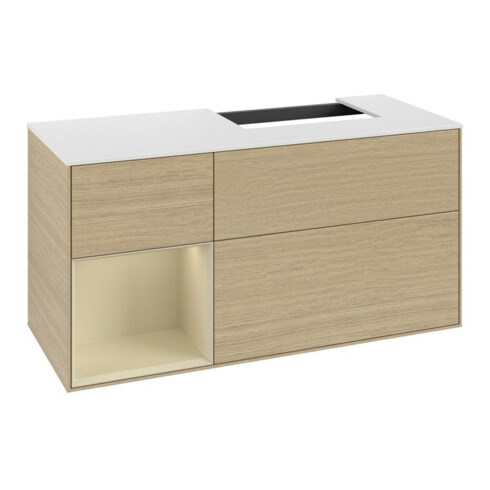 TTCV&B Meuble sous lavabo Plaque de recouvrement Gl. bl. avec Finion 120cm, Rég. g. d. Gr m Lac, placage chêne