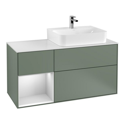 TTCV&B Meuble sous lavabo Plaque de recouvrement Gl. blanc avec Finion 120 cm, étagère gauche blanc avec laque, huile avec laque