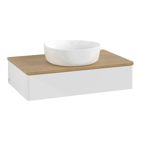 TTCV&B Meuble sous lavabo sans structure de façade - Éclairage Antao 80x19x50cm, WBP hon. Oa, blanc brillant Lac