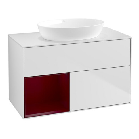 TTCV&B Meuble sous vasque Finion 100, blanc mat, porte Peo, blanc mat laqué