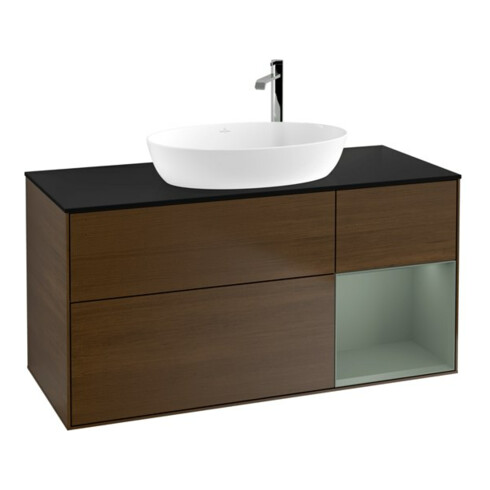 TTCV&B Meuble sous-vasque Finion 120 cm, placage bleu, rangement huile avec laque, noyer veinée