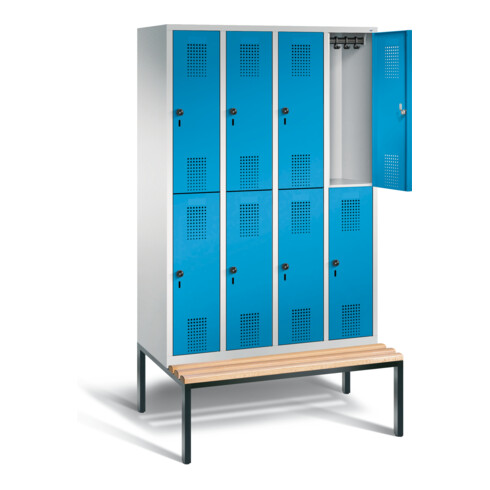 - Armoire vestiaire Evolo en acier à deux étages, 4 compartiments avec 2 casiers chacun.