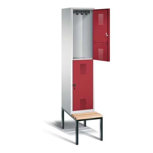 - Armoire vestiaire en acier à deux étages Evolo, 1 compartiment avec 2 casiers
