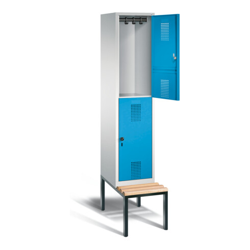 - Armoire vestiaire en acier à deux étages Evolo, 1 compartiment avec 2 casiers