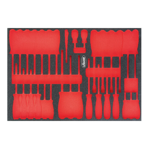 - Les outils manquants se voient immédiatement grâce à l'empreinte rouge