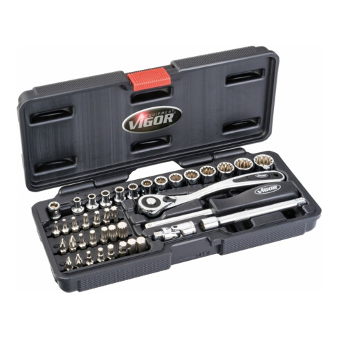 VIGOR Jeu de clés à douille multiprofil à carré intérieur 6,3 = 1/4 pouce V4217, 40 pièces, longueur totale 25 mm
