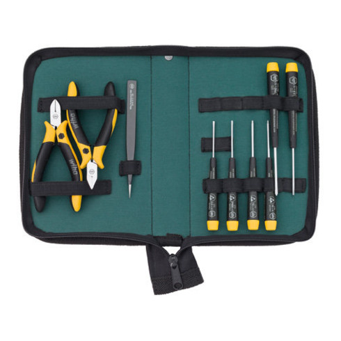 Wiha Jeu d'outils ESD Pinces, tournevis, pincettes, 9 pcs dans une trousse (33505)
